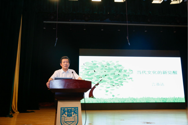 下午,大礼堂座无虚席,人头攒动。颜之江、言恭达、常志成三位大师,就他们的书画艺术成就、学习创作经验和对学生会员的殷切期望,分别作了精彩的演讲。大师们成就令人震撼,学生们无不为之赞叹!颜之江大师还以其南京高足、江苏中亚书画院院长李江海刻苦学习书法,取得骄人成绩的事迹为例,勉励大家,心无旁骛,聚精会神,潜心研习先贤碑帖,深入传统,走出传统,勇攀书画艺术高峰!
