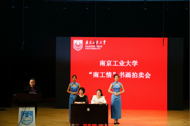 报告会结束后,大礼堂举行了“南工情”书画拍卖会。本次拍卖会由南京工业大学教育发展基金会主办,竞拍的56幅画作全部由校友或名家自愿捐赠,筹集的公益款项将全部用来支持南京工业大学的发展。