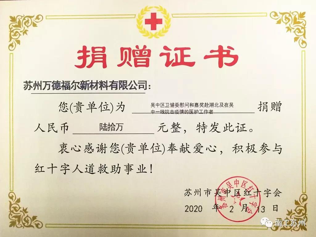 何宜祥决定通过吴中区红十字会定向捐赠给吴中区卫健委慰问和嘉奖赴湖北及在吴中一线抗击疫情的医护工作者,此为吴中区第一笔定向慰问嘉奖抗疫一线医护工作者的捐款,为吴中区战斗在抗疫一线的广大医护人员送去了爱心与温暖!