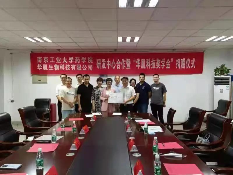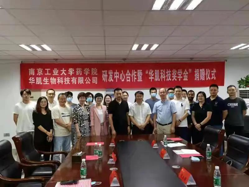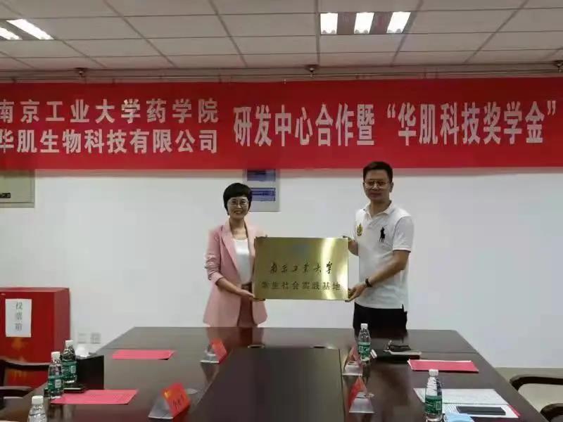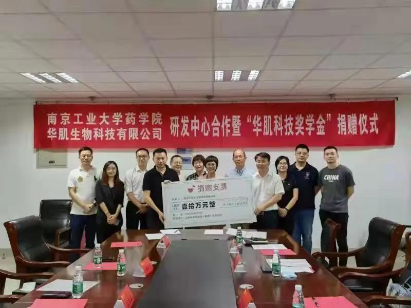 学校对外合作与发展处处长、教育发展基金会秘书长伏永祥与华肌集团董事长徐秀文共同签订捐赠协议书,并为华肌集团颁发捐赠证书。双方还进行了联合研发中心和大学生就业实习实践基地授牌等活动。